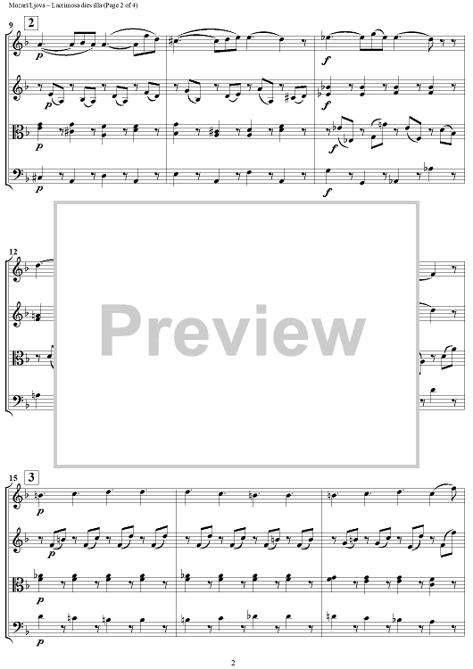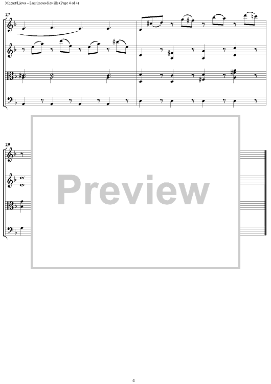 Digital Sheet Music for Lacrimosa dies illa - Score by Wolfgang Amadeus Mozart, Ljova scored for String Quartet; id:320472