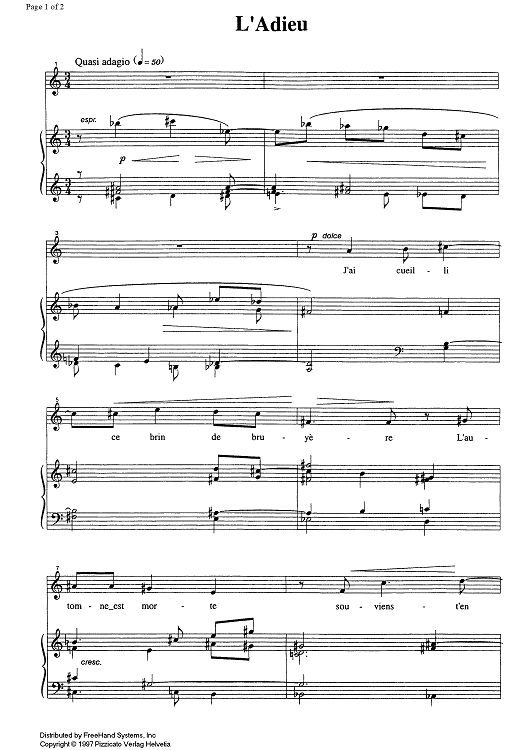 Digital Sheet Music for L'Adieu by Marco Sofianopulo scored for Soprano/Piano; id:334343