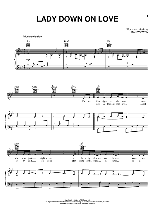 Digital Sheet Music for Lady Down On Love by Randy Owen, Alabama scored for Piano/Vocal/Chords; id:389757
