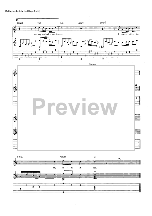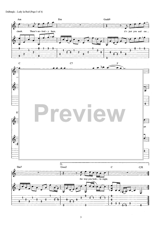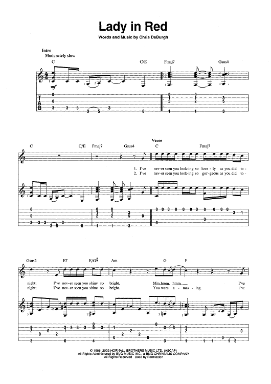 Digital Sheet Music for Lady in Red by Chris DeBurgh scored for Guitar Tab/Vocal/Chords; id:442872