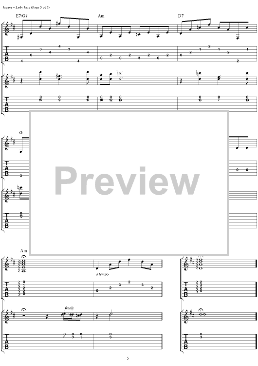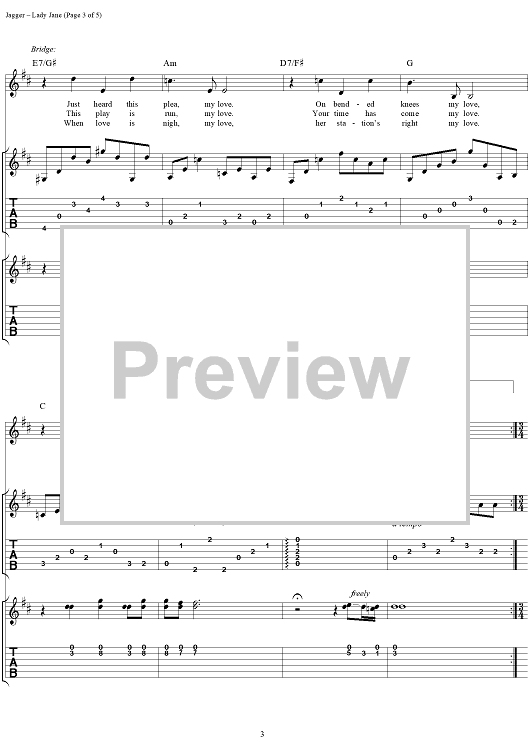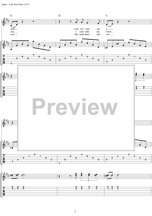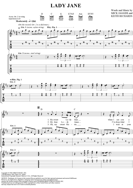 Digital Sheet Music for Lady Jane by Keith Richards, The Rolling Stones, Mick Jagger scored for Guitar Tab/Vocal; id:316390