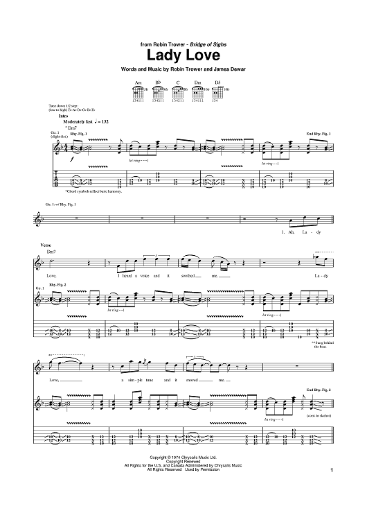 Digital Sheet Music for Lady Love by Robin Trower, James Dewar scored for Guitar Tab; id:375431