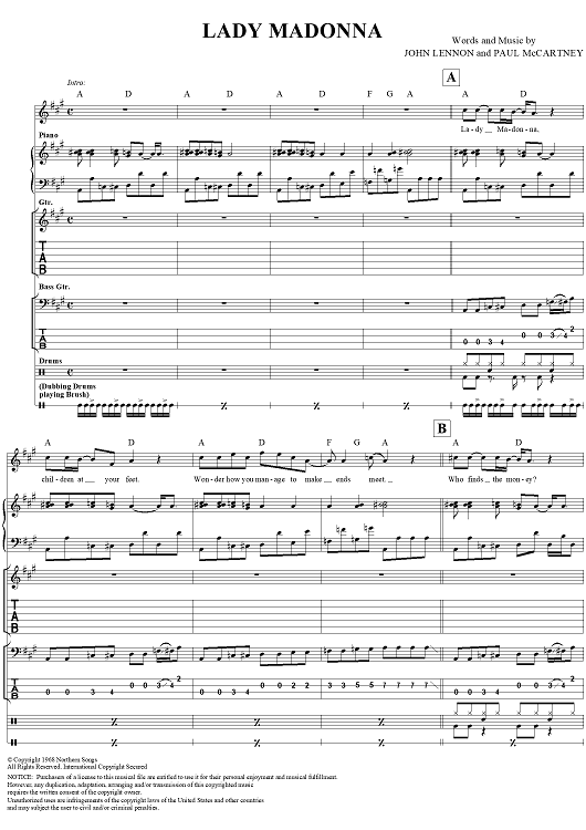 "Lady Madonna" Sheet Music by The Beatles