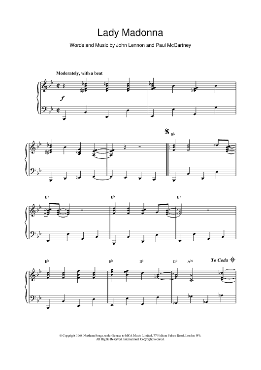 Digital Sheet Music for Lady Madonna by Paul McCartney, The Beatles, John Lennon scored for Piano; id:375805