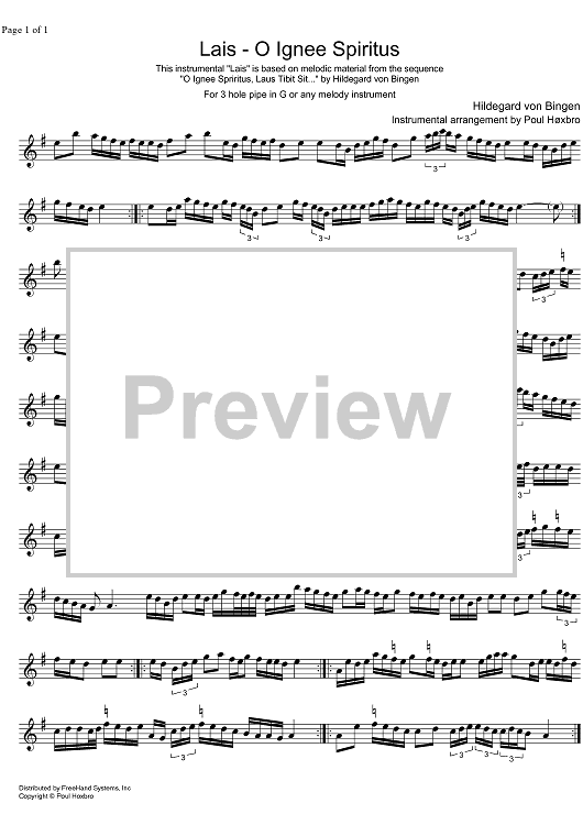 Digital Sheet Music for Lais O Ignee Spiritus by , Hildegard von Bingen, Poul Hoxbro scored for G Pipe or any Instrument; id:323520