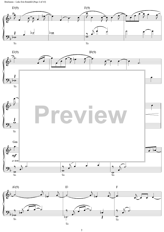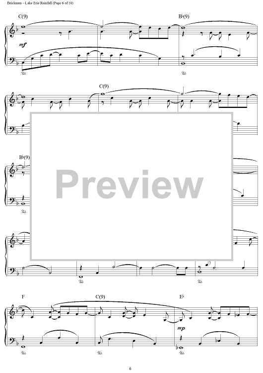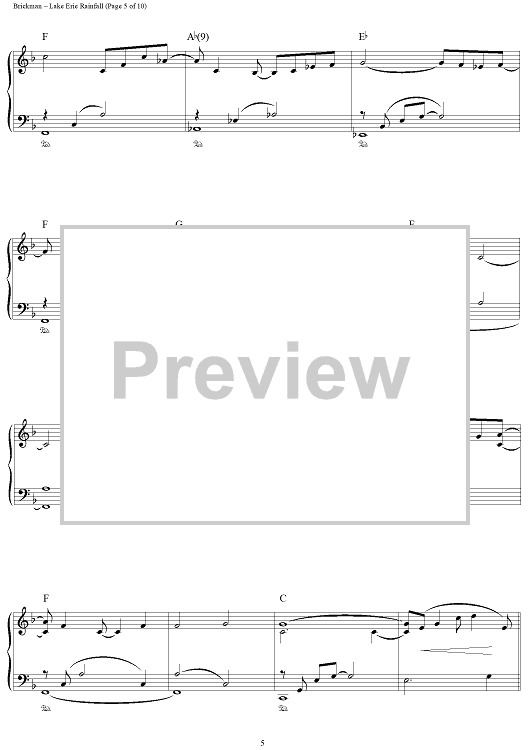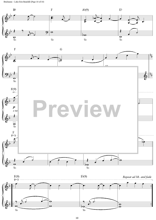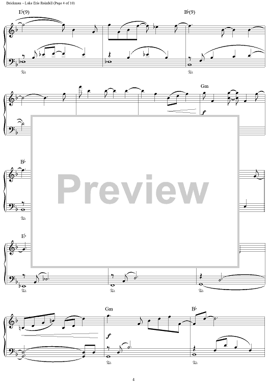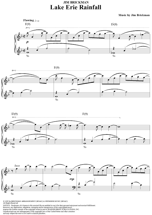 Digital Sheet Music for Lake Erie Rainfall by Jim Brickman scored for Piano Solo; id:109892