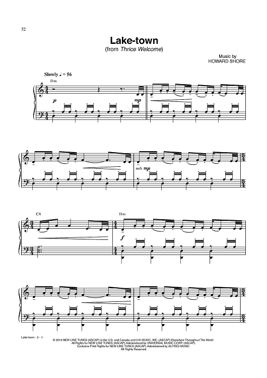 "Lake-town (from Thrice Welocme)" Sheet Music by Howard Shore