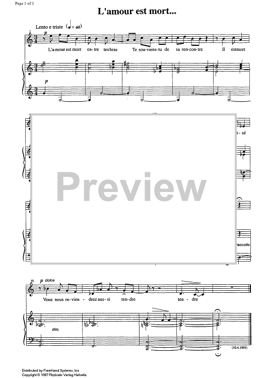 Digital Sheet Music for L'amour est mort by Marco Sofianopulo scored for Soprano/Piano; id:334347