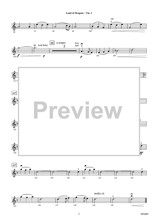 "Land of Dragons - Violin 1" Sheet Music by Chris Thomas