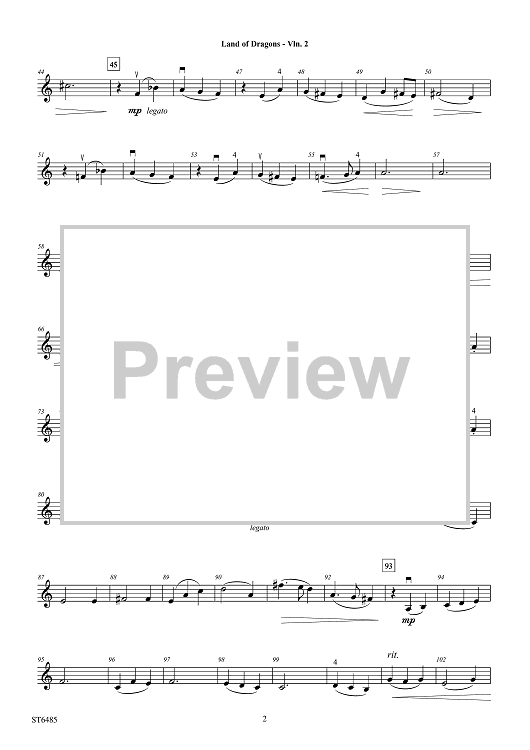 "Land of Dragons - Violin 2" Sheet Music by Chris Thomas