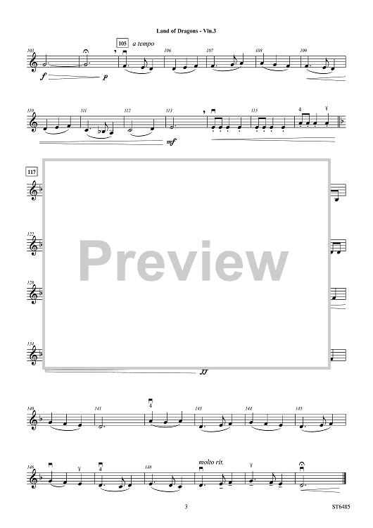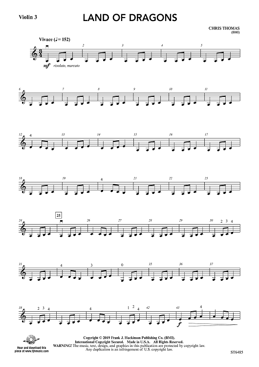 "Land of Dragons - Violin 3" Sheet Music by Chris Thomas