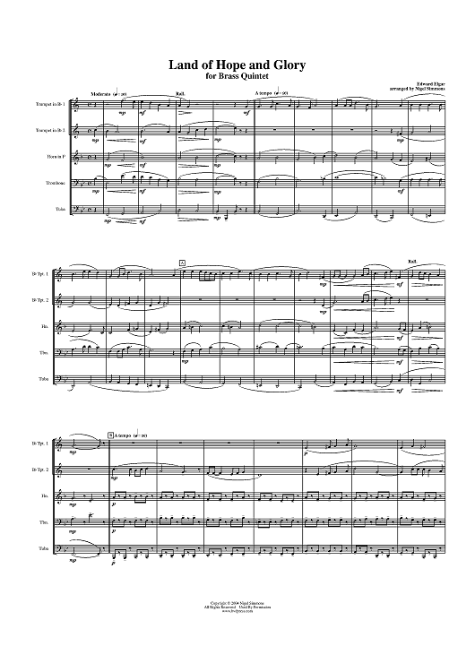 Digital Sheet Music for Land of Hope and Glory - Score by Nigel Simmons, Edward Elgar scored for Brass Quintet; id:311792