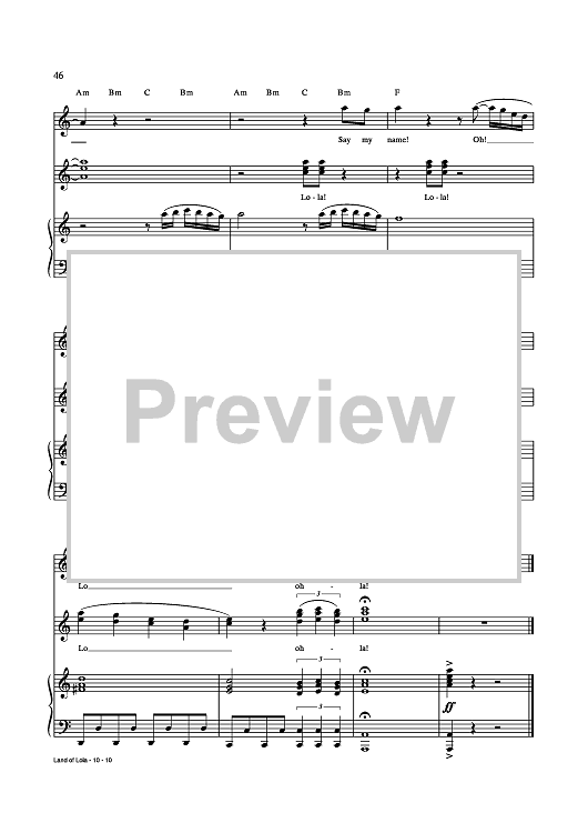 "Land Of Lola" Sheet Music by Cyndi Lauper