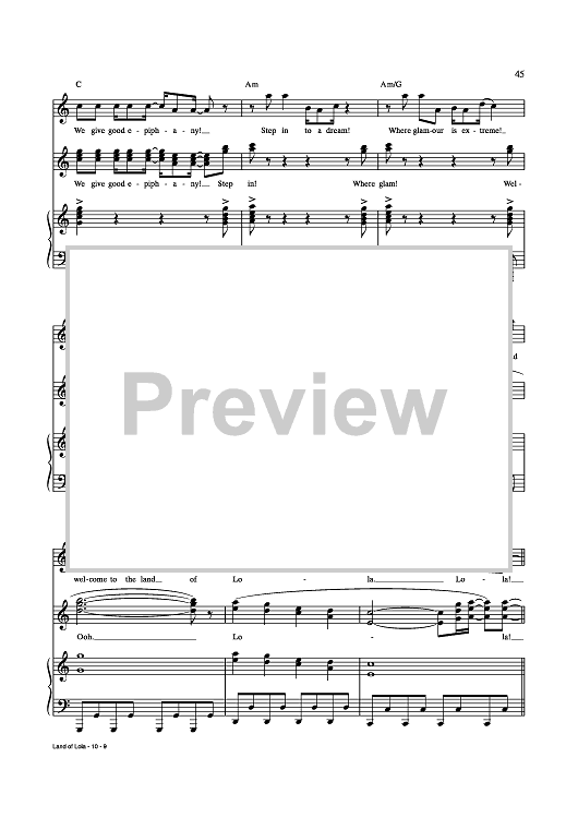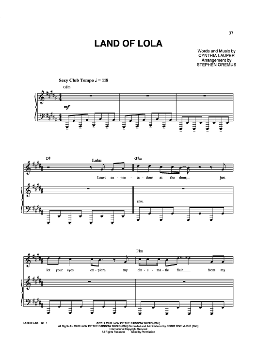 Digital Sheet Music for Land Of Lola by Cyndi Lauper, Stephen Oremus scored for Piano/Vocal/Chords; id:436605