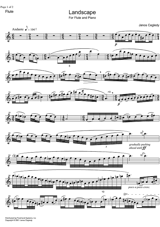 Digital Sheet Music for Landscape - Flute by Janos Cegledy scored for Flute/Piano; id:332170