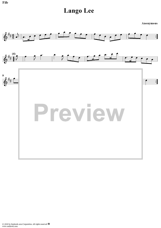 Digital Sheet Music for Lango Lee by Unknown Writer scored for Fife; id:277244