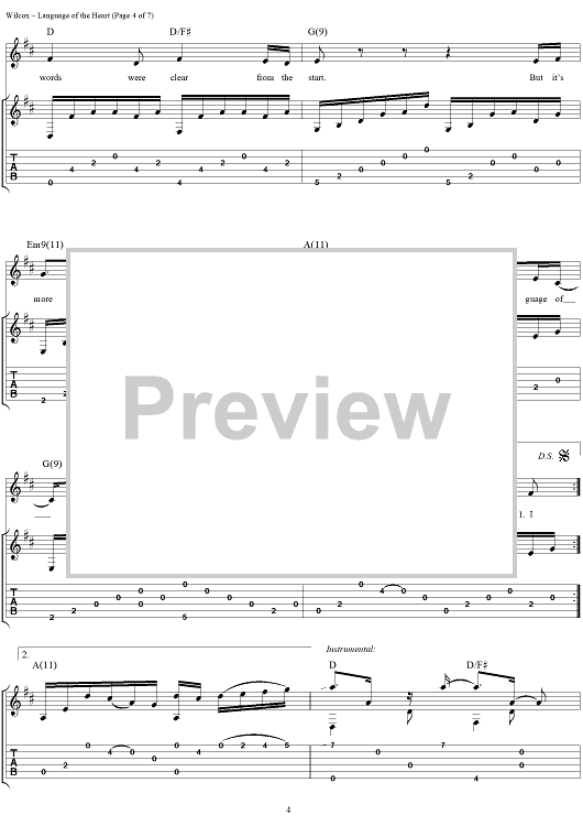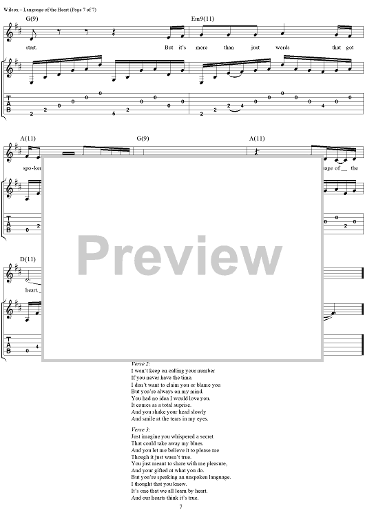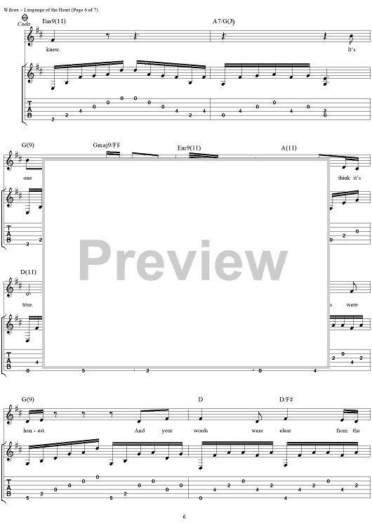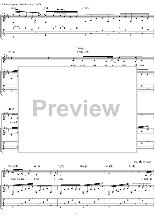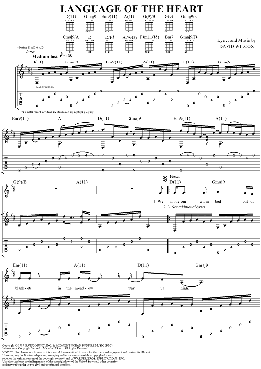 Digital Sheet Music for Language of the Heart by David Wilcox scored for Guitar Tab/Vocal; id:263747