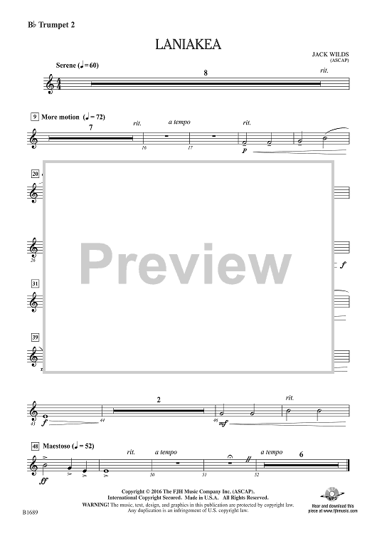 Digital Sheet Music for Laniakea - Bb Trumpet 2 by Jack Wilds scored for Concert Band; id:508866