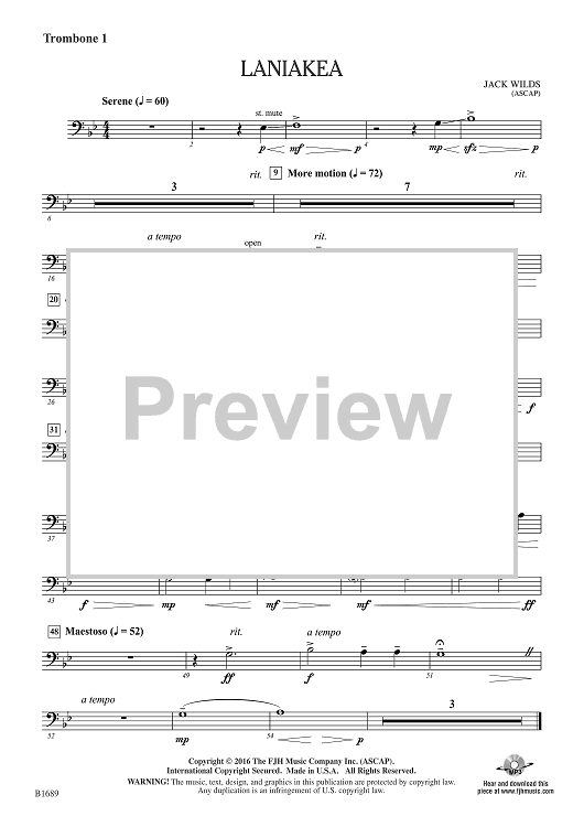 Digital Sheet Music for Laniakea - Trombone 1 by Jack Wilds scored for Concert Band; id:508868