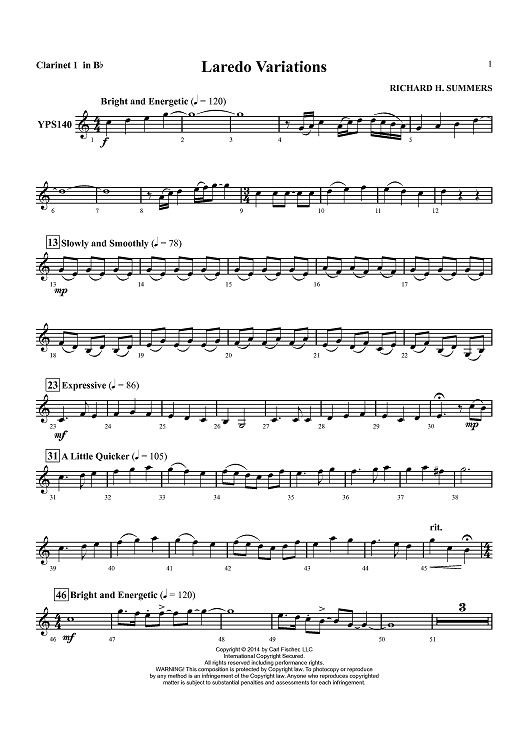"Laredo Variations - Clarinet 1 in Bb" Sheet Music by Richard Summers