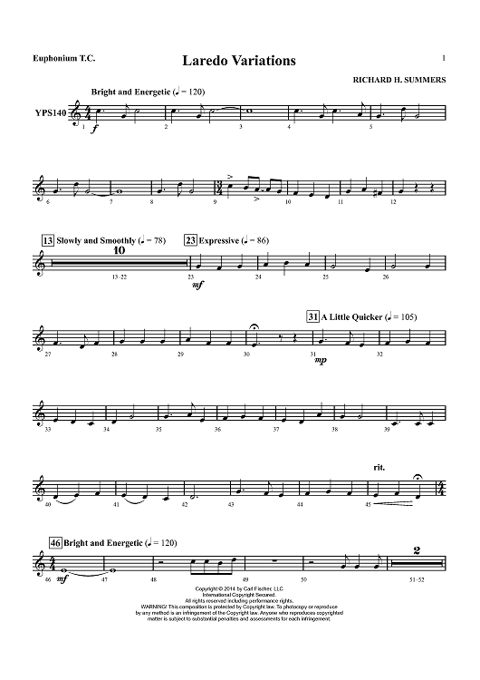 "Laredo Variations - Euphonium TC in Bb" Sheet Music by Richard Summers