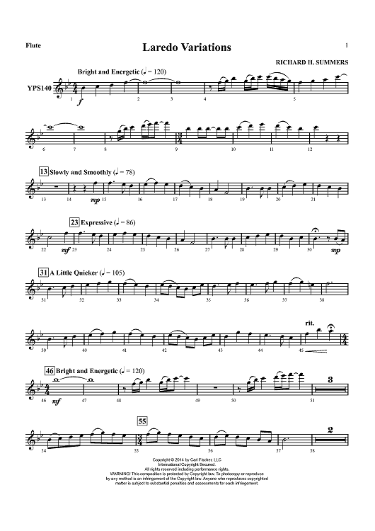 "Laredo Variations - Flute" Sheet Music by Richard Summers