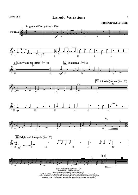 "Laredo Variations - Horn in F" Sheet Music by Richard Summers