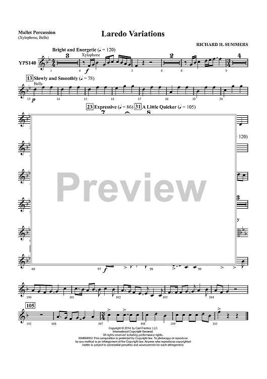 Digital Sheet Music for Laredo Variations - Mallet Percussion by Richard Summers scored for Concert Band; id:453693