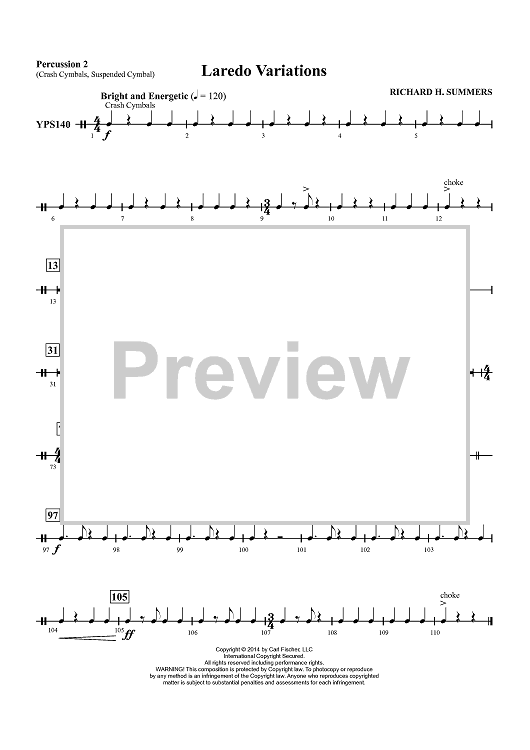 Digital Sheet Music for Laredo Variations - Percussion 2 by Richard Summers scored for Concert Band; id:453696