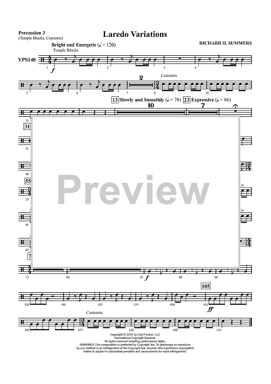 "Laredo Variations - Percussion 3" Sheet Music by Richard Summers