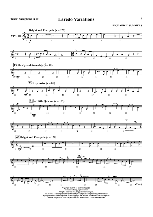 "Laredo Variations - Tenor Sax" Sheet Music by Richard Summers