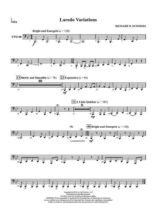 "Laredo Variations - Tuba" Sheet Music by Richard Summers