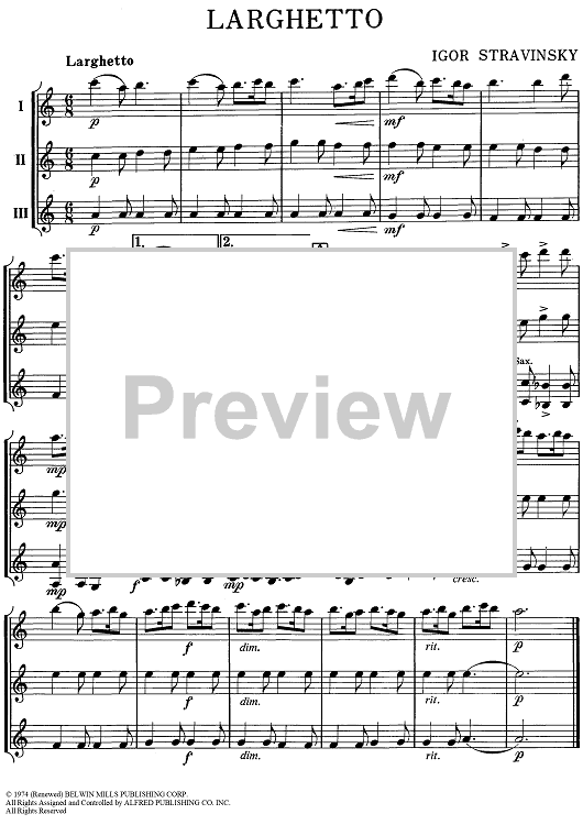 "Larghetto - Eb Saxes / Eb Clarinets" Sheet Music by Igor Stravinsky