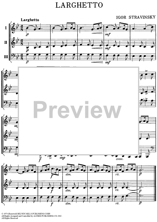 "Larghetto - Horn in F" Sheet Music by Igor Stravinsky