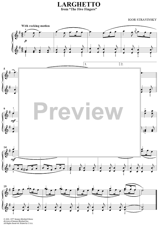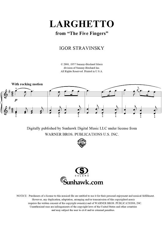 Digital Sheet Music for Larghetto by Igor Stravinsky scored for Piano Solo; id:287680