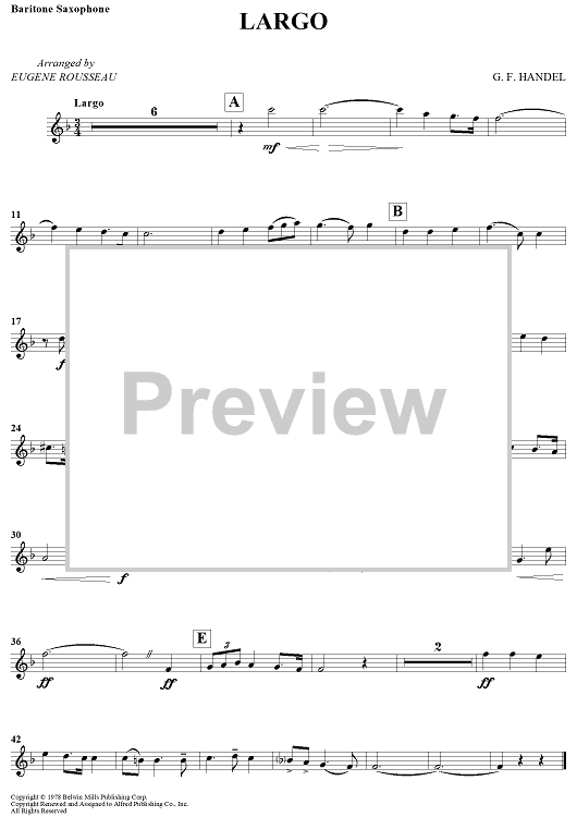 Digital Sheet Music for Largo by George Frideric Handel, Eugene Rousseau scored for Eb Baritone Sax/Piano; id:434497