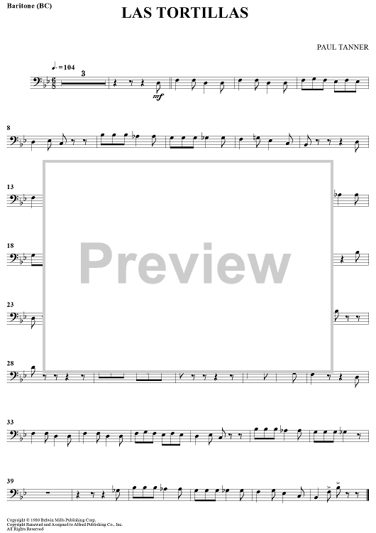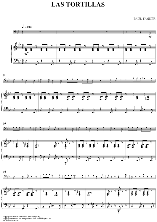 Digital Sheet Music for Las Tortillas by Paul Tanner scored for Baritone BC/Piano; id:437928