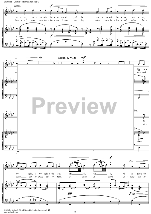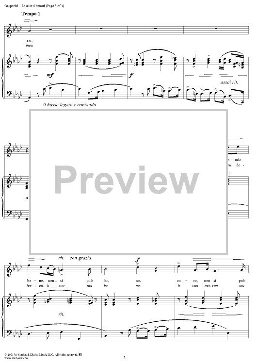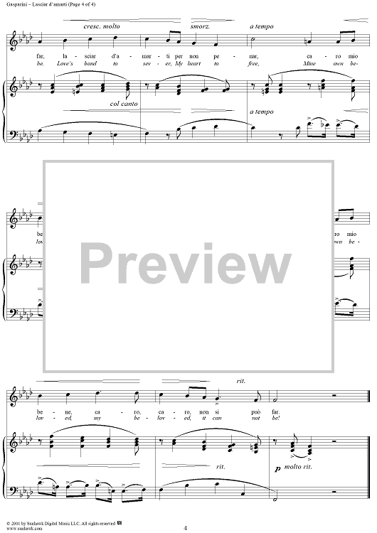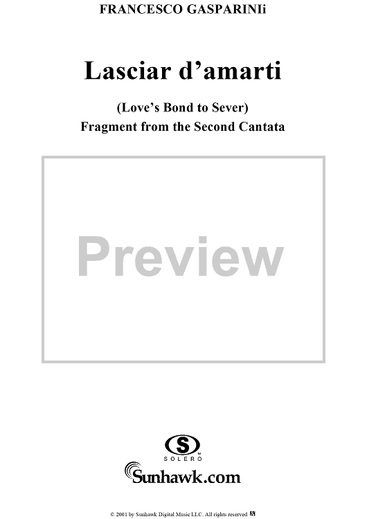 Digital Sheet Music for Lasciar d'amarti (Love's Bond to Sever) by Francesco Gasparini scored for Voice/Piano; id:268259
