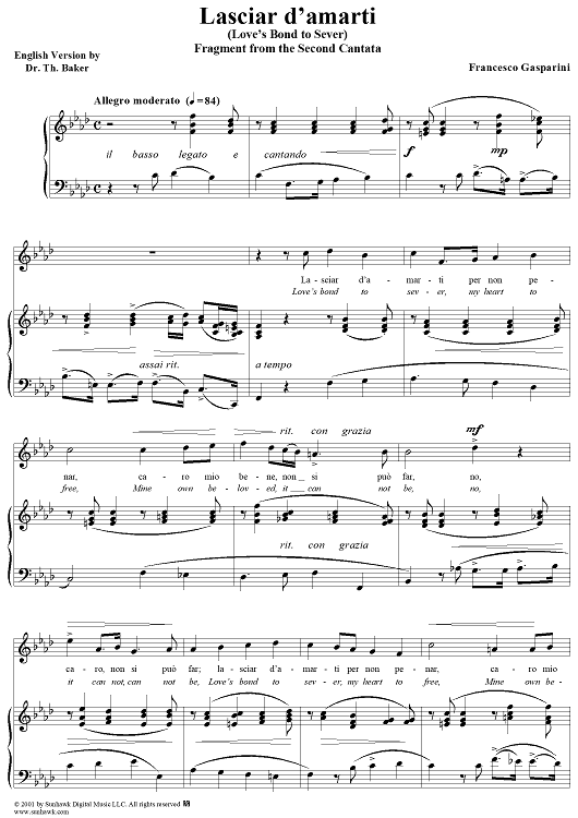 "Lasciar d'amarti (Love's Bond to Sever)" Sheet Music by Francesco Gasparini