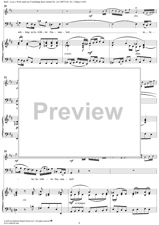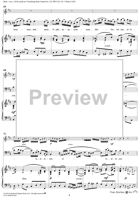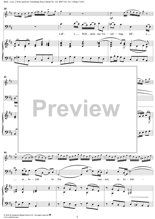""Lass, o Welt, mich aus Verachtung", Aria, No. 5 from Cantata No. 123: "Liebster Immanuel, Herzog der Frommen" - Piano Score" Sheet Music by Johann Sebastian Bach
