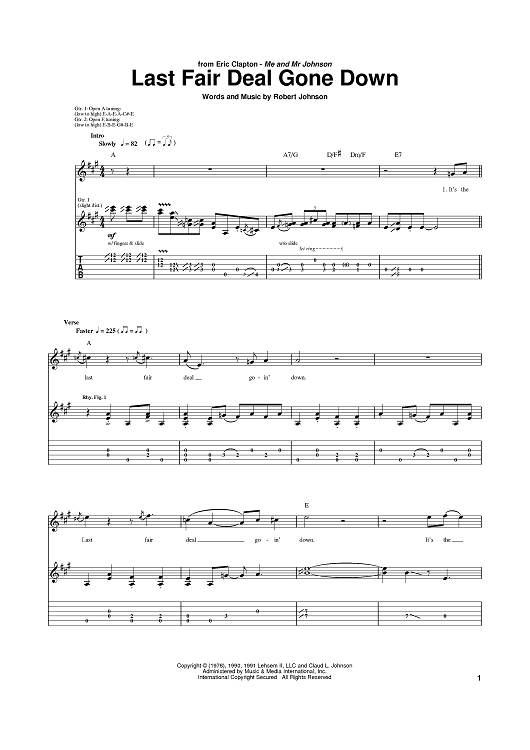 Digital Sheet Music for Last Fair Deal Gone Down by Eric Clapton, Robert Johnson scored for Guitar Tab; id:374923