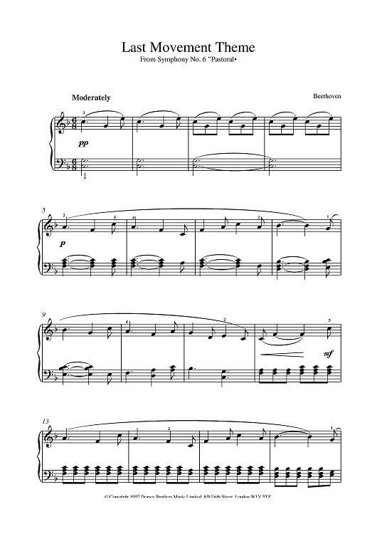 "Last Movement Theme From Symphony No.6 Pastoral" Sheet Music by Ludwig van Beethoven