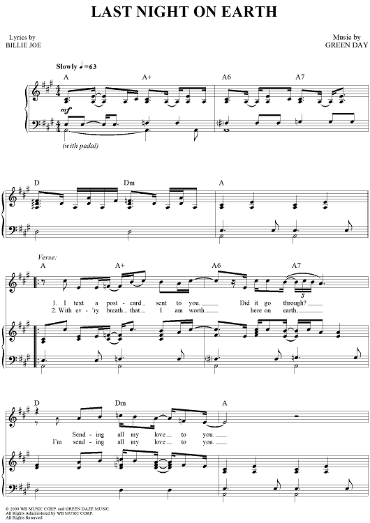 Digital Sheet Music for Last Night on Earth by Green Day, Billie Joe scored for Guitar Tab/Vocal; id:410865