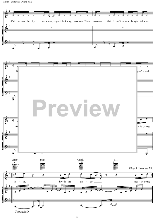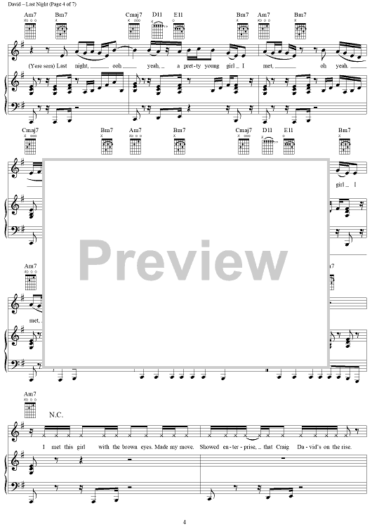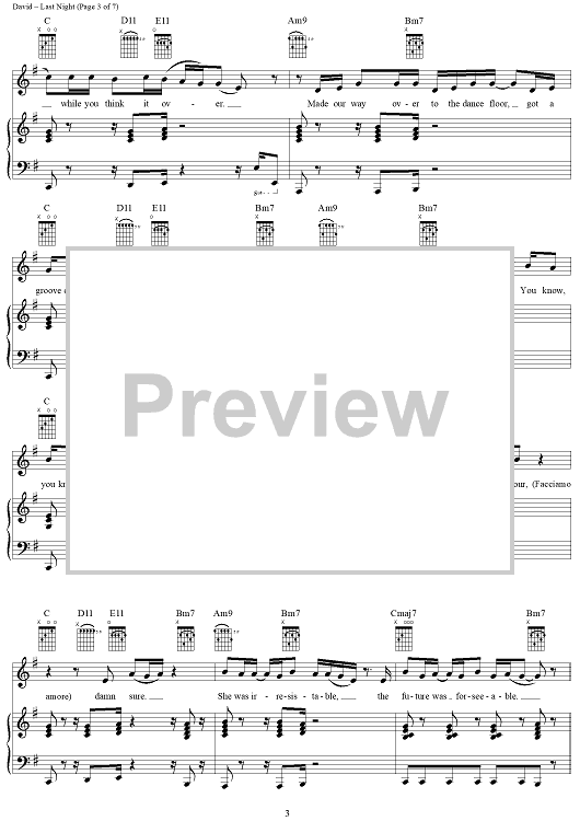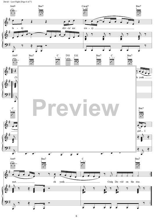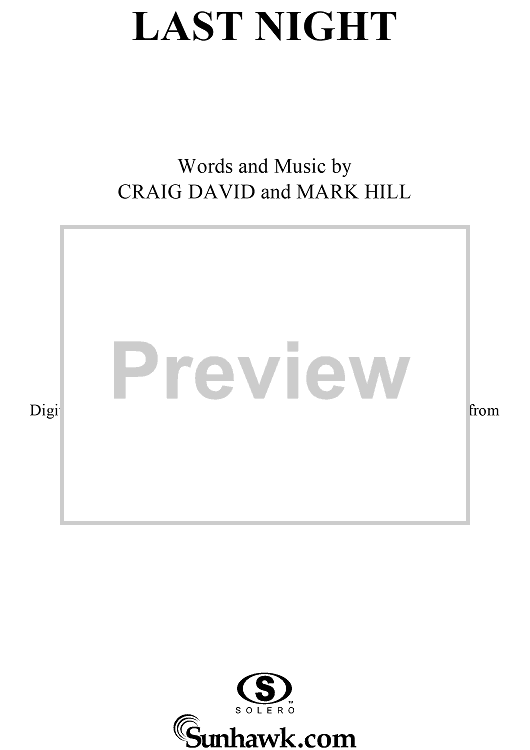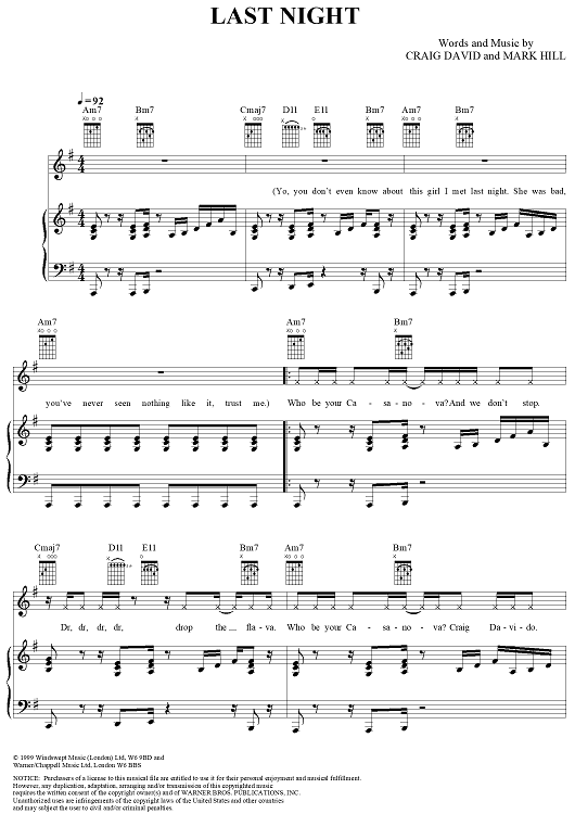 Digital Sheet Music for Last Night by Craig David, Mark Hill scored for Piano/Vocal/Chords; id:284944
