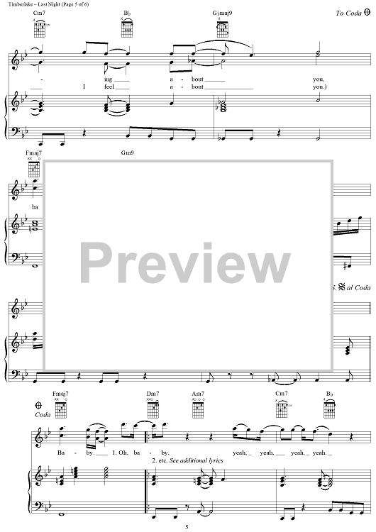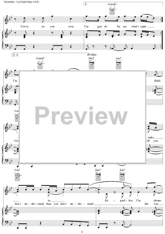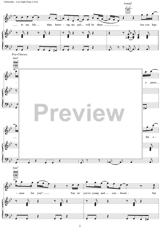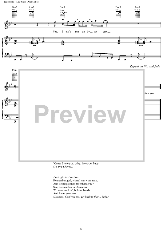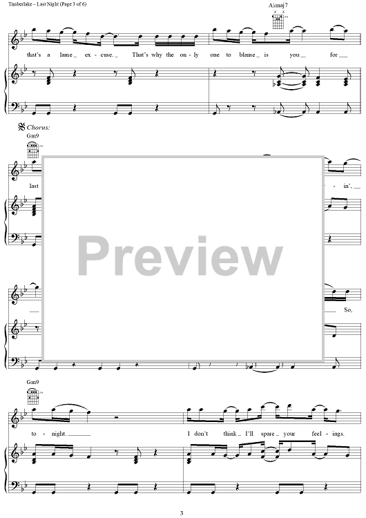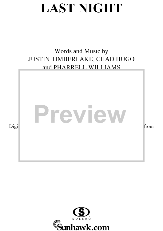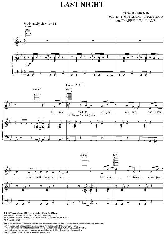 Digital Sheet Music for Last Night by Chad Hugo, Pharrell Williams, Justin Timberlake scored for Piano/Vocal/Chords; id:296455