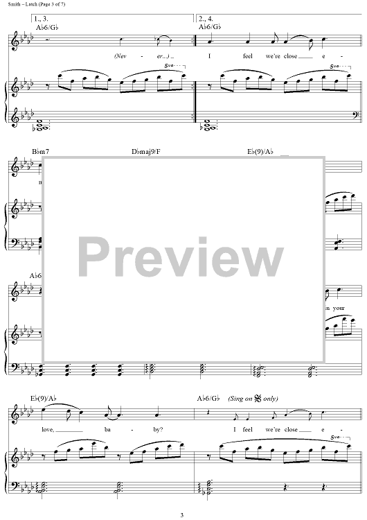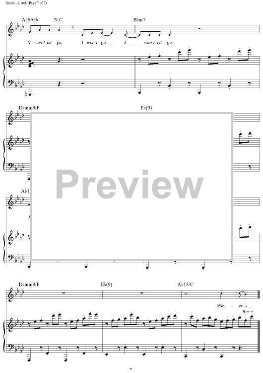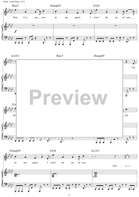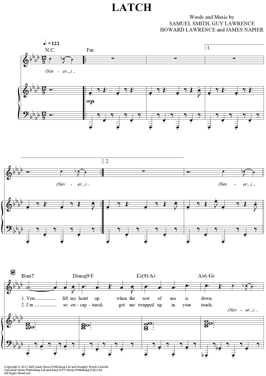 Digital Sheet Music for Latch by Sam Smith, Guy Lawrence, Howard Lawrence, James Napier, Disclosure scored for Piano/Vocal/Chords; id:442068