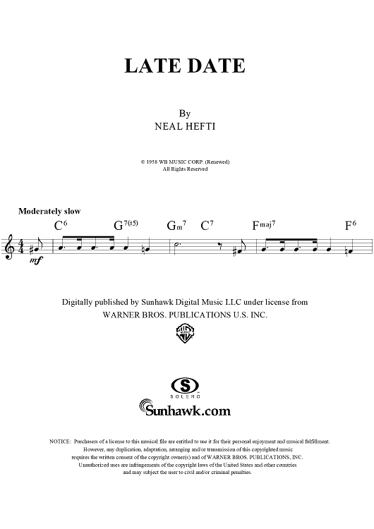 Digital Sheet Music for Late Date by Count Basie, Neal Hefti scored for Lead Sheet; id:267238