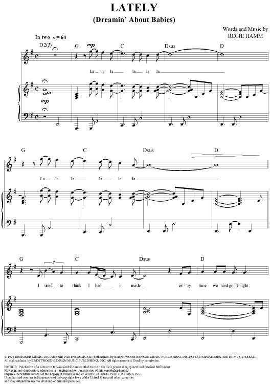 Digital Sheet Music for Lately (Dreamin' About Babies) by Bob Carlisle, Regie Hamm scored for Piano/Vocal/Chords; id:266240