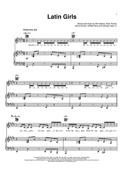Digital Sheet Music for Latin Girls by Jaime Gomez, will.i.am, Black Eyed Peas, Allan Pineda scored for Piano/Vocal/Chords; id:373647
