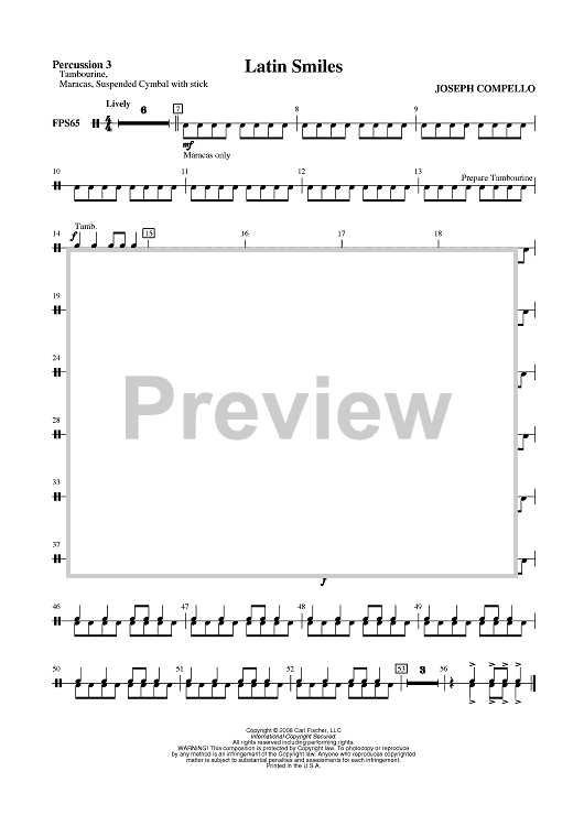 "Latin Smiles - Percussion 3" Sheet Music by Joseph Compello